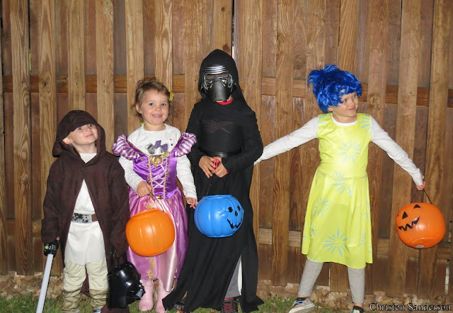 Thankful for days to dress up and go around the neighborhood asking neighbors for candy. Thankful for Reese's peanut butter cups. Thankful for a clean kitchen. Thankful for lunches made and waiting for tomorrow. Thankful for the smoky smell in the air from all the fire pits going in the neighborhood tonight. Thankful for a great neighborhood for our kids to grow up in. Thankful for all the beautiful red trees we have in our neighborhood. Thankful for a spectacular sunrise this morning. Thankful for a very good night at home with all the great loves of my life. Thankful for a very happy Halloween.