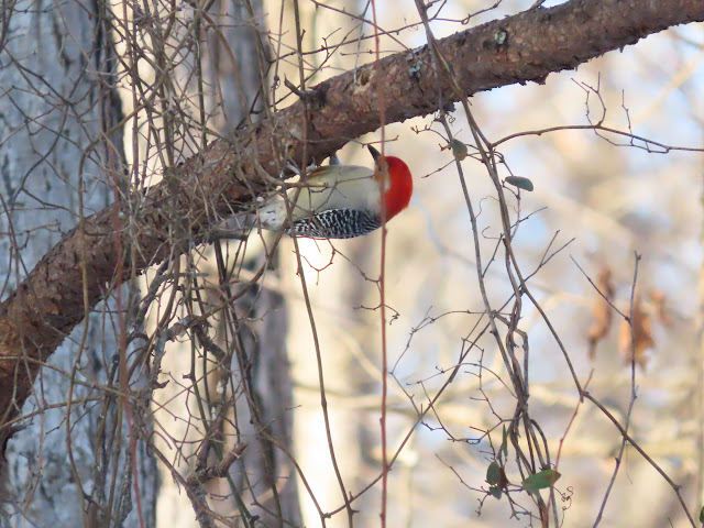I sat outside and watched the birds. Today when I watched them, I noticed that the red headed woodpecker does a curious thing with the corn from the bird feeder. It flies to my feeder, picks out pieces of corn, flies to a certain tree, and then stuffs the piece of corn into a hole it had already created in the tree with its beak. Every time it filled a hole with corn, it did so hanging upside down. I watched the woodpecker do it over and over again. I learn a lot from sitting and watching.